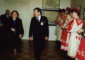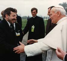 Spotkanie z Ojcem Św. - 1991. W czasie wizyty Papieża Jana Pawła II w Płocku Biskup Zygmunt Kamiński przedstawił Kazimierza Cieślika jako założyciela i prezesa Stowarzyszenia Rodzin Katolickich.